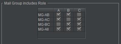 • Mail Group includes Role: Which Roles are members of each Mail Group.