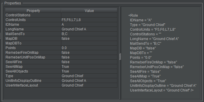 • Unit Send Info to Role: Which Roles each Unit will send the information (within their observation areas) to.