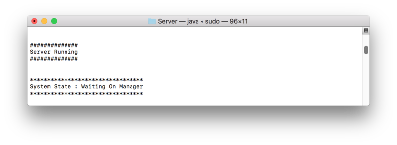 After some startup time the C3Fire server should write 'C3Fire Server Running', and 'Waiting On Manager'.
