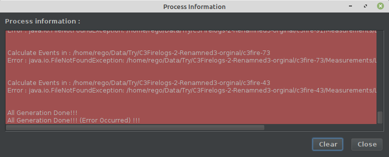 If something goes wrong while processing the log file the background in the process window will turn red.