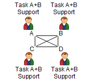 The organisation is mainly defined by configuration of the human players and the communication structures. The organisation can be freely configuration from one to some thing around sixteen human players depending on the speed of the used computer systems. Example on organisation can be a hierarchic or a flat (net work based) organisation, see figure 2 and 3.